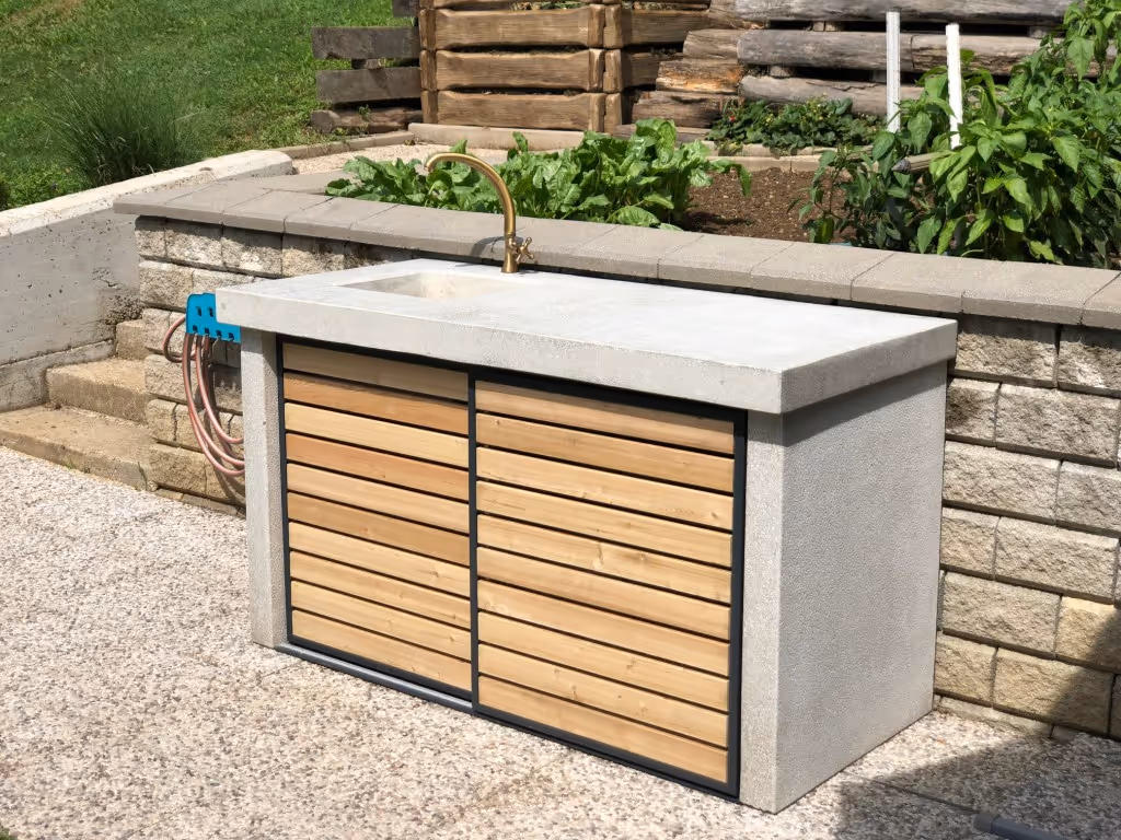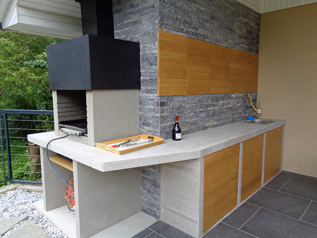 Pošljite nam grob osnutek in za vse ostalo bomo poskrbeli mi. Vsak modul je ulit po vaših natančnih merah, naj bo to ravna postavitev, kotna rešitev ali zaokrožen prostor na terasi. Višina, širina in globina so prilagodljive, tako da se kuhinja naravno prilega vašemu zunanjemu prostoru.