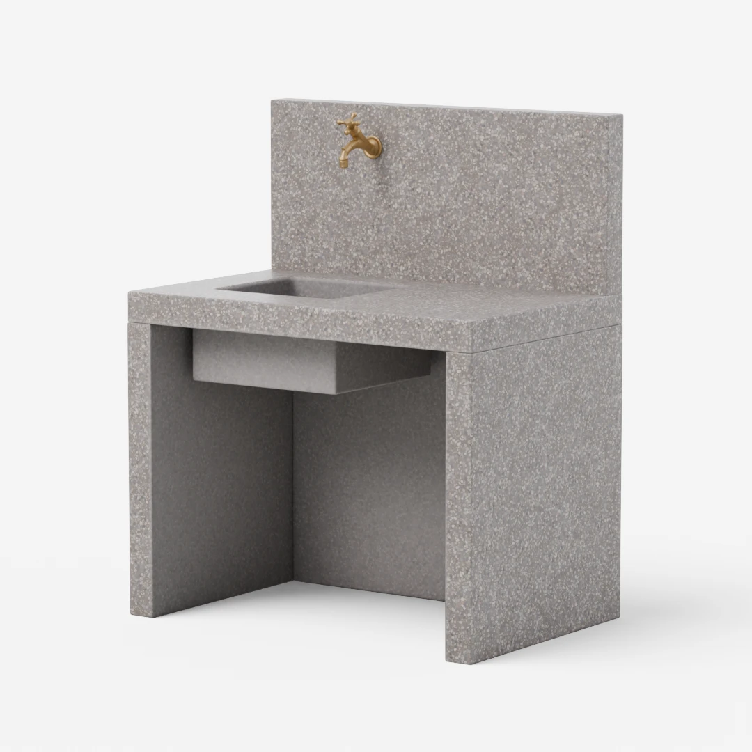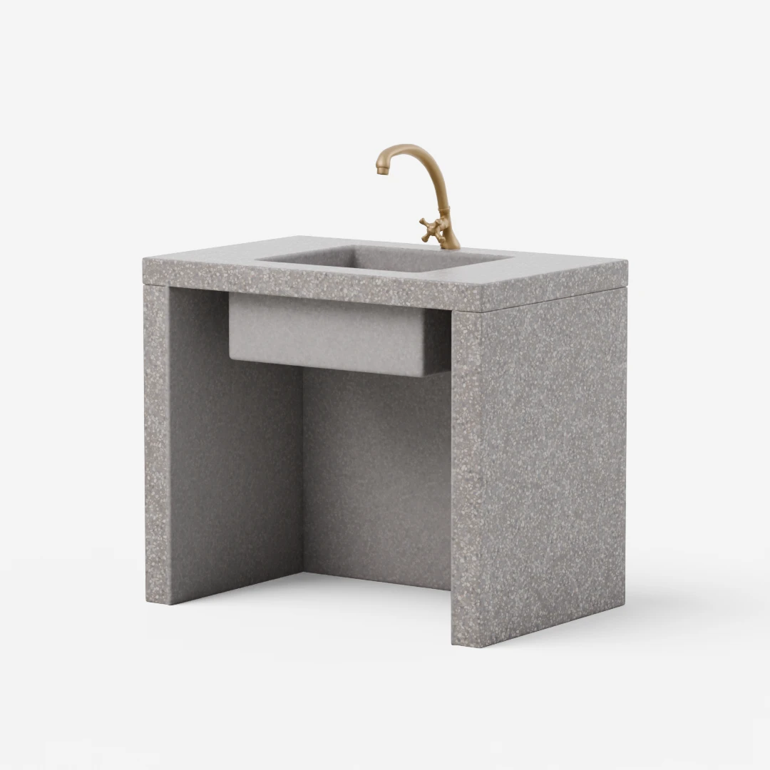 Zunanji betonski umivalniki združujejo trpežnost in estetski videz – idealna rešitev za vrtove, terase in letne kuhinje.