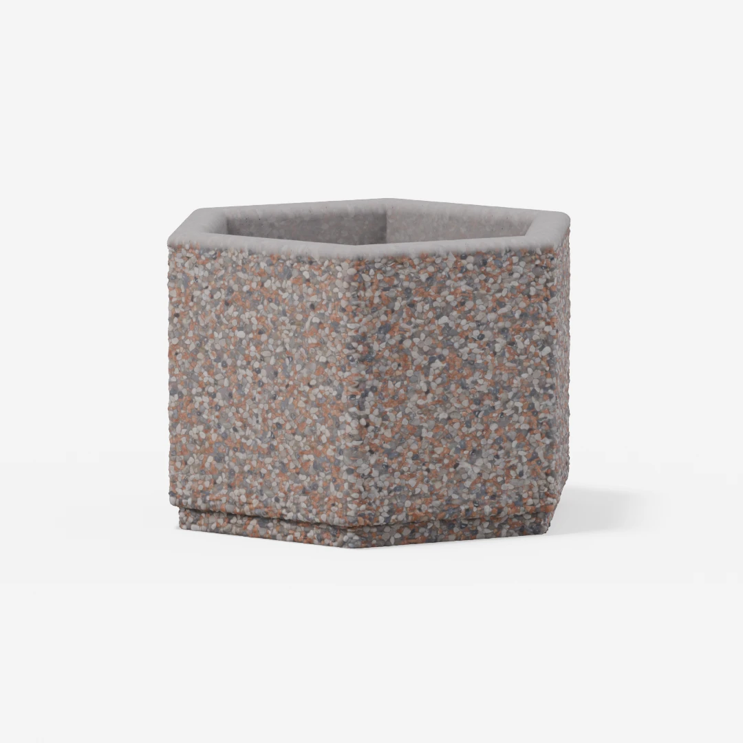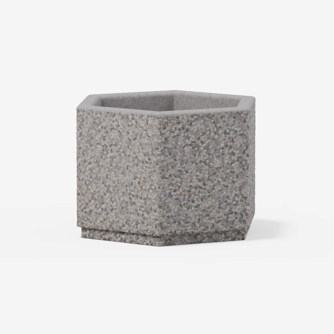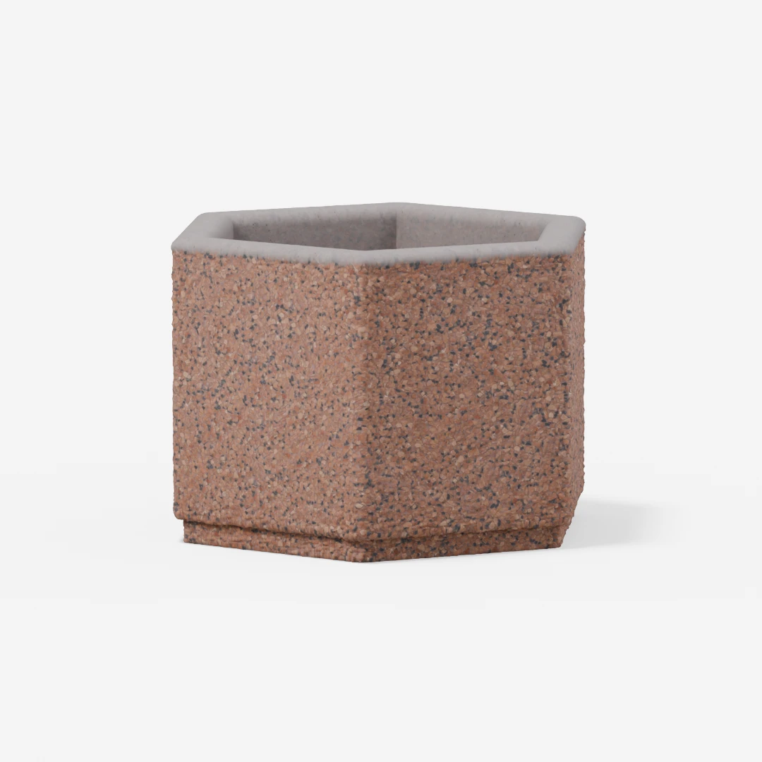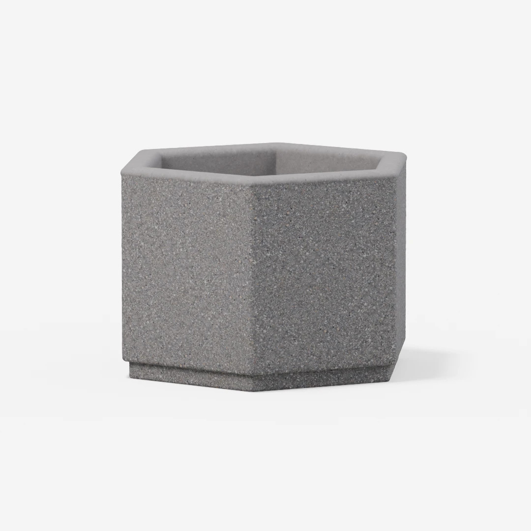 Šestkotno je kakovostno betonsko korito, zasnovano za sajenje okrasnih rastlin in drevnine. Odlikujejo ga trpežnost, eleganten videz ter primernost za vrtove, terase in javne prostore.