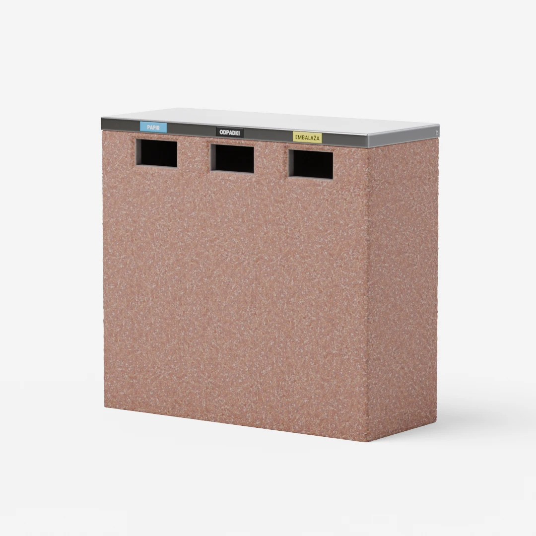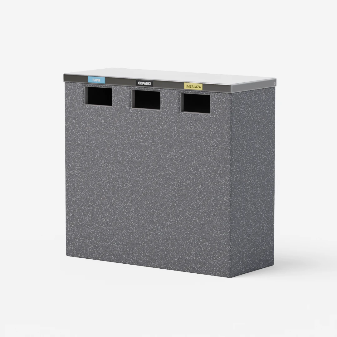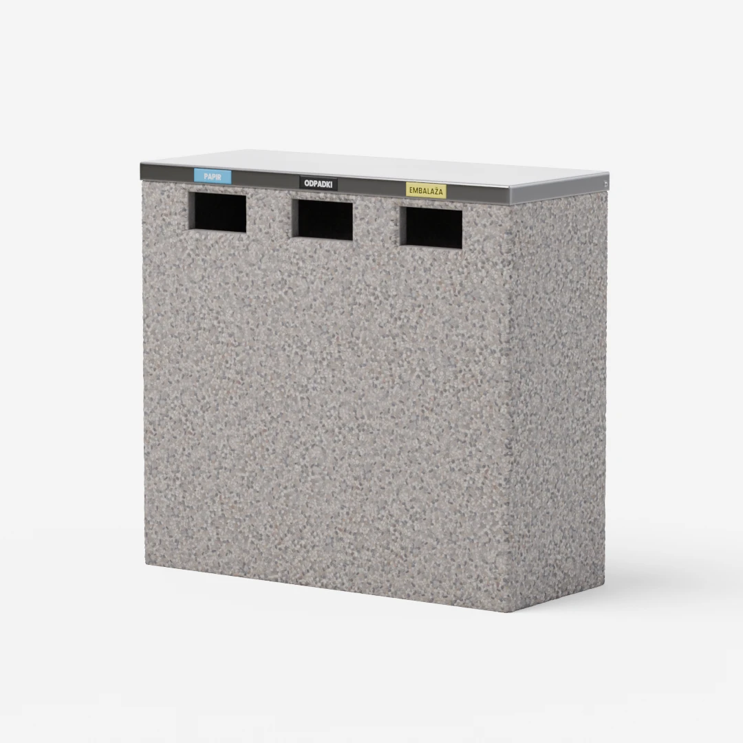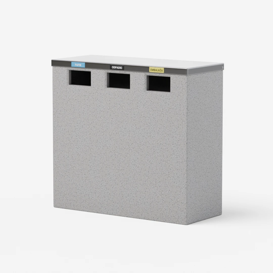Trajni in okolju prijazni koši za ločeno zbiranje odpadkov so namenjeni zbiranju ter ločevanju odpadkov na javnih mestih. Uporabljajo se na zunanjih in notranjih prostorih kot so parkirišča, parki, hoteli, trgovine, poslovni prostori, bolnišnice, lokali, šole in podobno. S smetnjaki boste poskrbeli za lepši izgled in za čistejšo okolico vaših objektov. Opcija s pepelnikom ali brez.