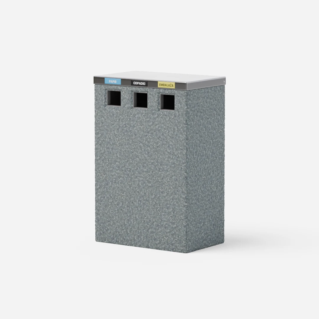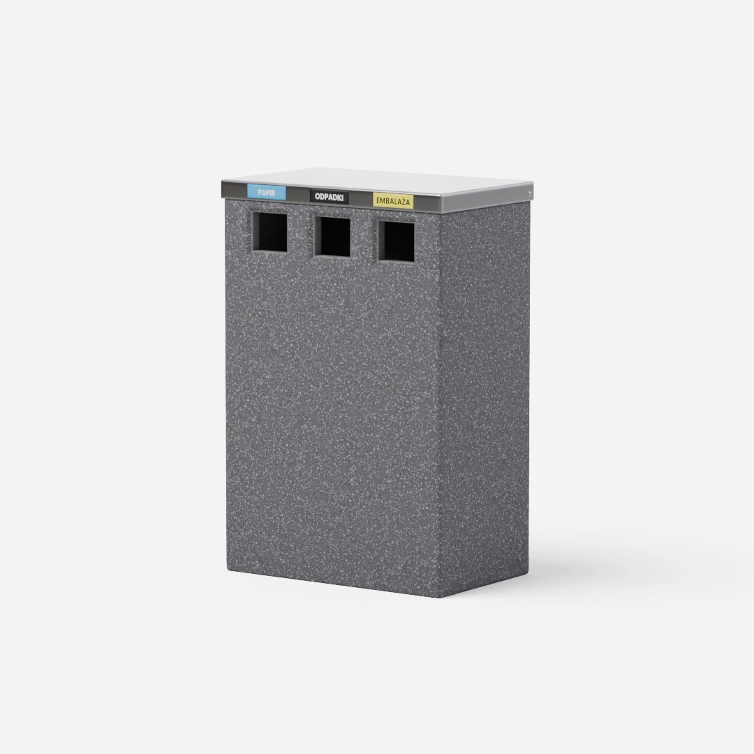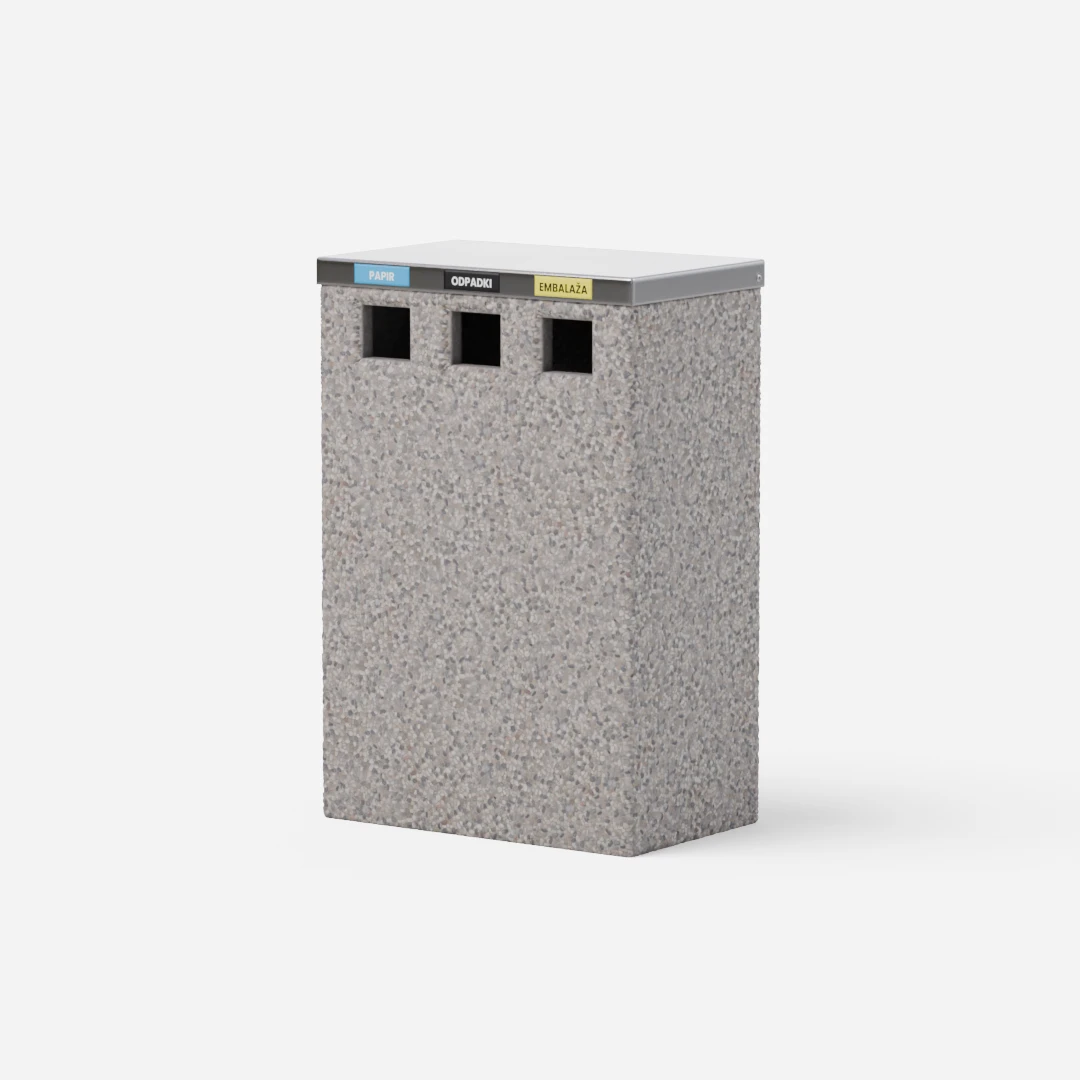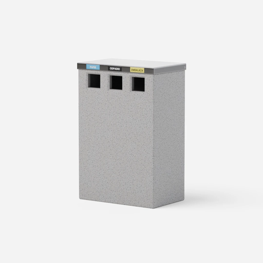 Trajni in okolju prijazni koši za ločeno zbiranje odpadkov so namenjeni zbiranju ter ločevanju odpadkov na javnih mestih. Uporabljajo se na zunanjih in notranjih prostorih kot so parkirišča, parki, hoteli, trgovine, poslovni prostori, bolnišnice, lokali, šole in podobno. S smetnjaki boste poskrbeli za lepši izgled in za čistejšo okolico vaših objektov. Opcija s pepelnikom ali brez.