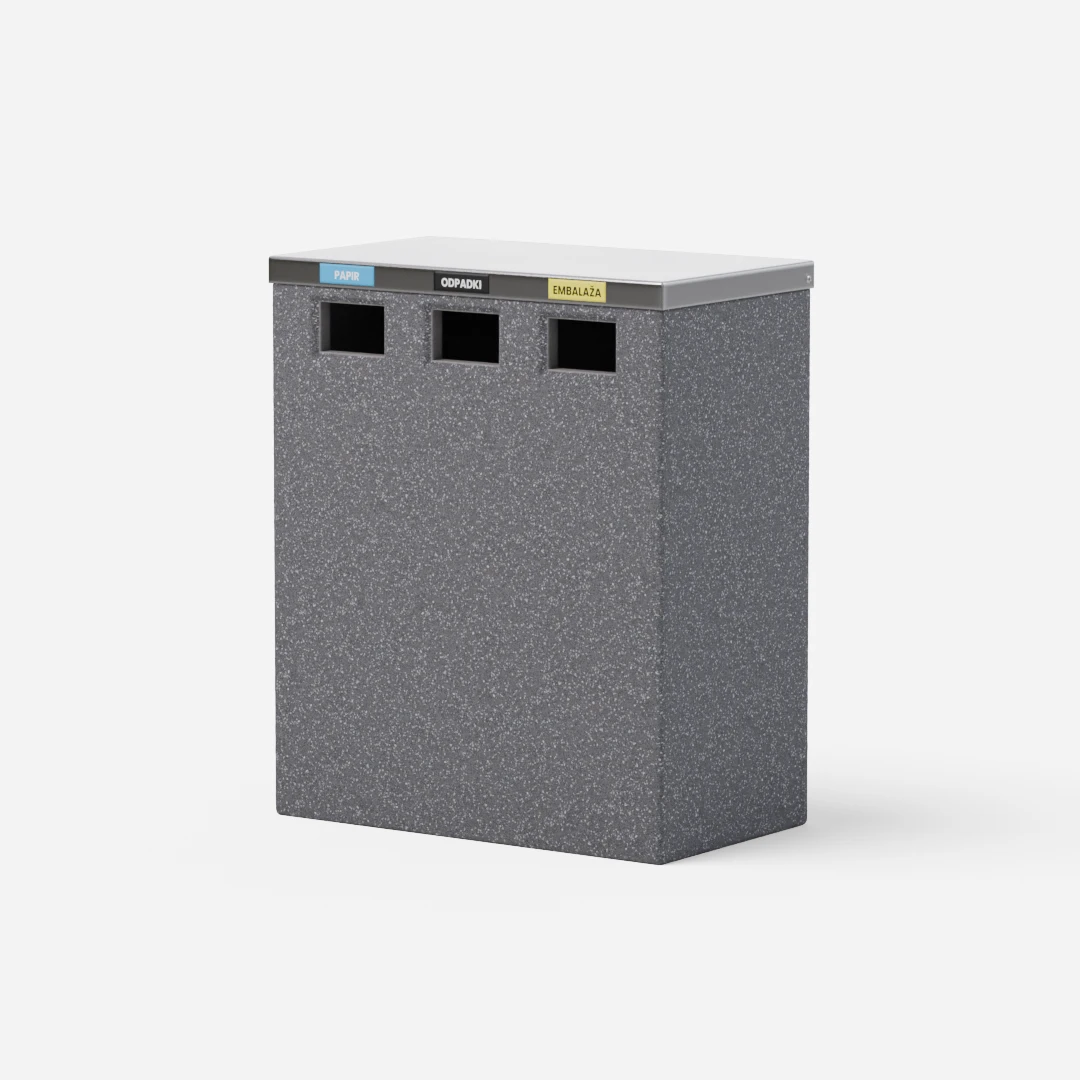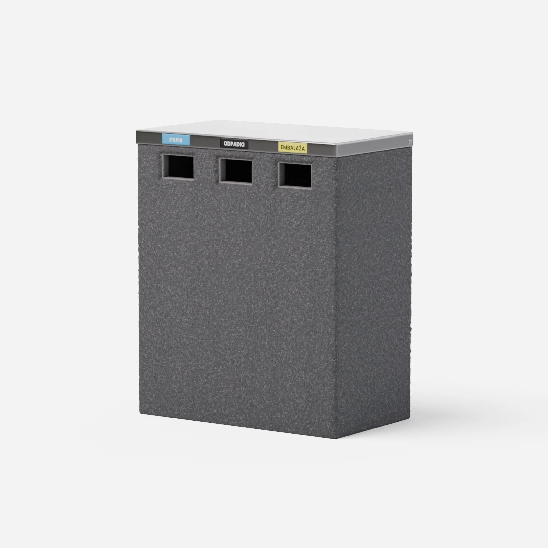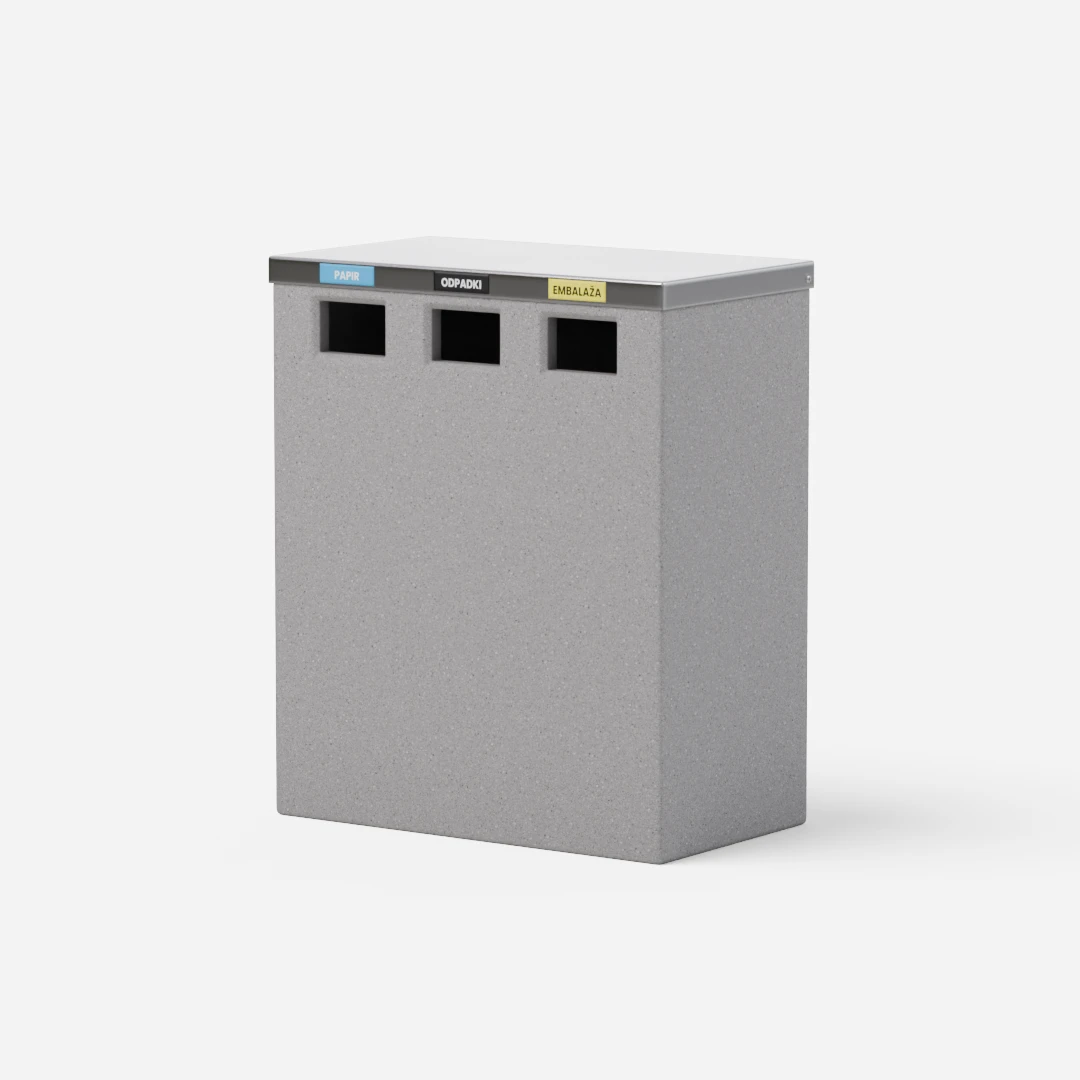Trajni in okolju prijazni koši za ločeno zbiranje odpadkov so namenjeni zbiranju ter ločevanju odpadkov na javnih mestih. Uporabljajo se na zunanjih in notranjih prostorih kot so parkirišča, parki, hoteli, trgovine, poslovni prostori, bolnišnice, lokali, šole in podobno. S smetnjaki boste poskrbeli za lepši izgled in za čistejšo okolico vaših objektov. Opcija s pepelnikom ali brez.