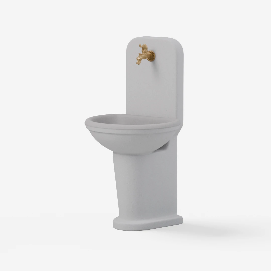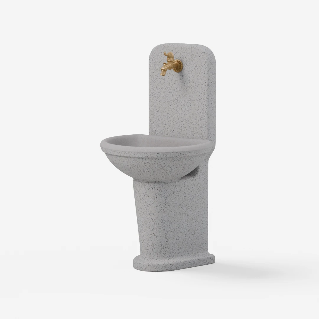 Možnost dodatnega iztoka na levi ali desni strani noge umivalnika ter dodatne cevi za toplo vodo ali deževnico. Globina korita 20 cm.